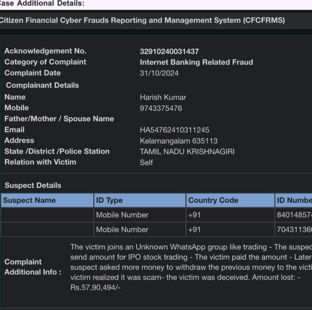 2. Case 1Order Details:Withdraw Amount: 25000 INROrder ID: F-1847607437977800173Status(f4): SuccessFee: 0 INRCreated Time: 1/11/2025, 10:19:20 pmCase 2Order Details:Withdraw Amount: 10000 INROrder ID: F-1847607632385834428Case 3 Order Details:Withdraw Amount: 50000 INROrder ID: F-1847141698153024199 UTR :530071143441 UTR: 530795694002 UTR: 530795688816 THe merchant is involved in fruad activities the money was ilegal i withdraw bank account is frozen due to these amount now it needs legal proceedings bcgame is telling me on we can't help you as i was complaint with in 30 days they didn't take action now if ask them check they replied that is more one month old that is not excuse that is scaming openly near about 10 deposit forfited or sacmed 15 withdrawal forfited that is not fairness