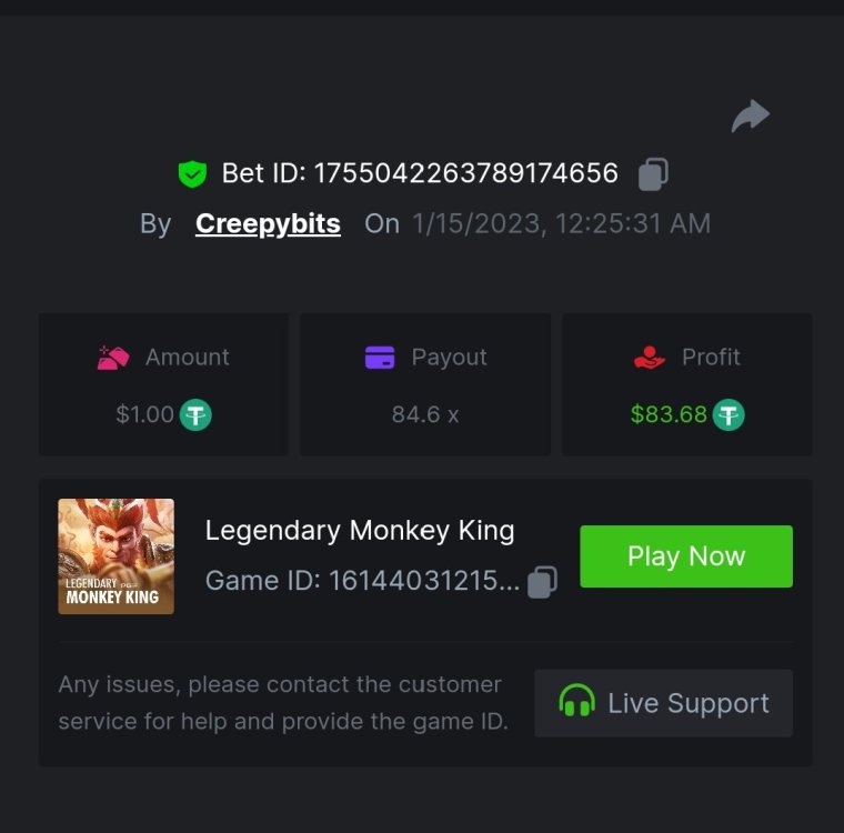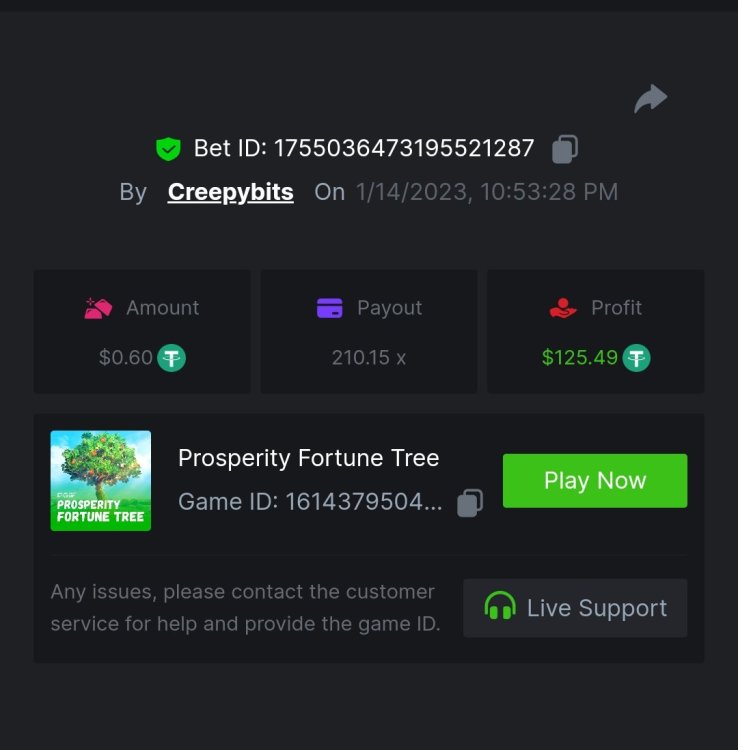 6. -- Just to keep track -- Wild Bounty Showdown - 945.7x Candy Bonanza - 102.4x Leprechaun Riches - 98.75x Spirited Wonders - 68.35x Butterfly Blossom - 135.44x Supermarket Spree - 152.25x Wild Bandito - 207.2x Destiny of Sun and Moon - 111.4x Prosperity Fortune Tree - 210.15x Legendary Monkey King - 84.6x -- -- -- -- -- -- -- -- -- -- -- -- https://bc.game/#/sd/111MI4BCN45A8J https://bc.game/#/sd/1118N98VQ6YOLV https://bc.game/#/sd/111FLN8H2KMUXF https://bc.game/#/sd/1117ZLODNLU13N https://bc.game/#/sd/111ASNM3GZTLOZ https://bc.game/#/sd/111E79UVO7INMB https://bc.game/#/sd/111D534T8YKE1F https://bc.game/#/sd/111ECYHMTQN09F https://bc.game/#/sd/111LTQM7BZ1TEB https://bc.game/#/sd/111D33QIXPOU1F BOUNTY
